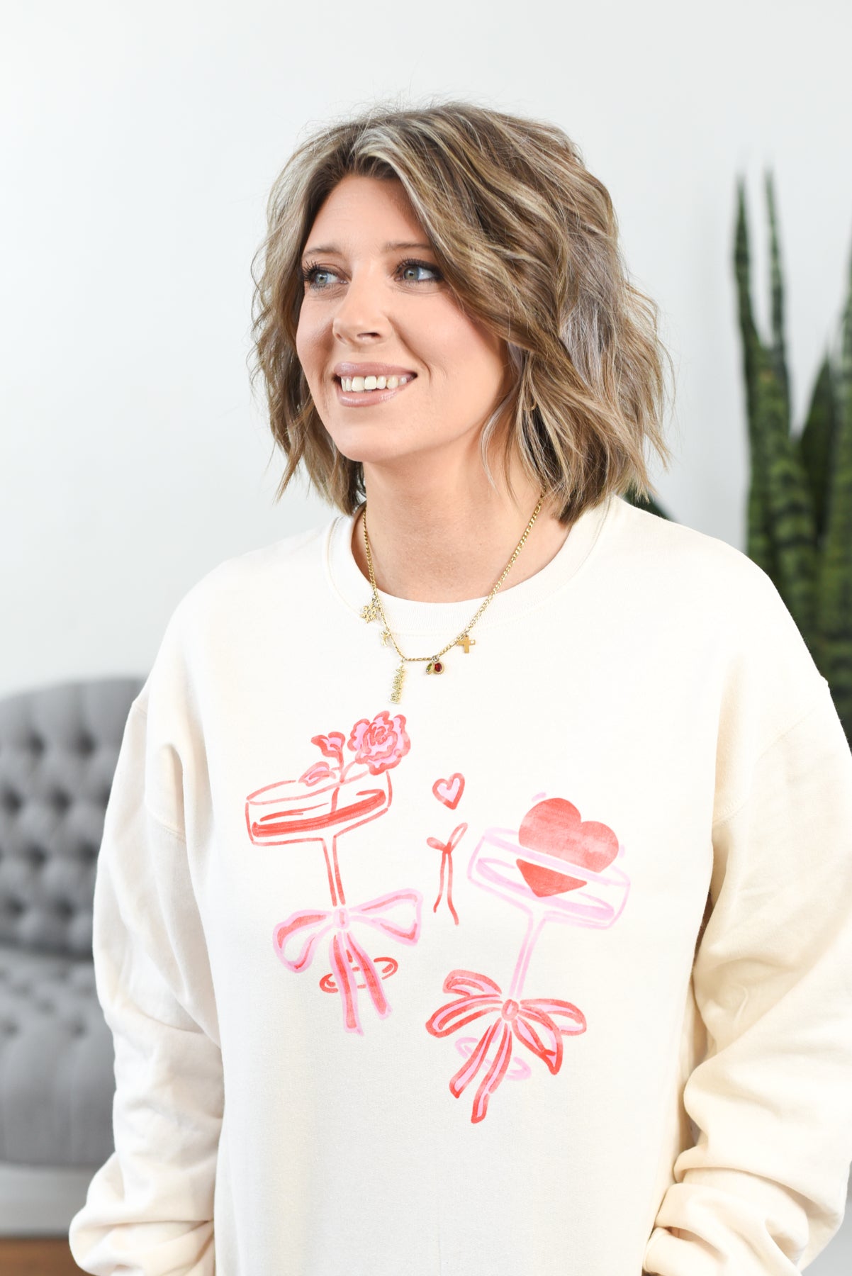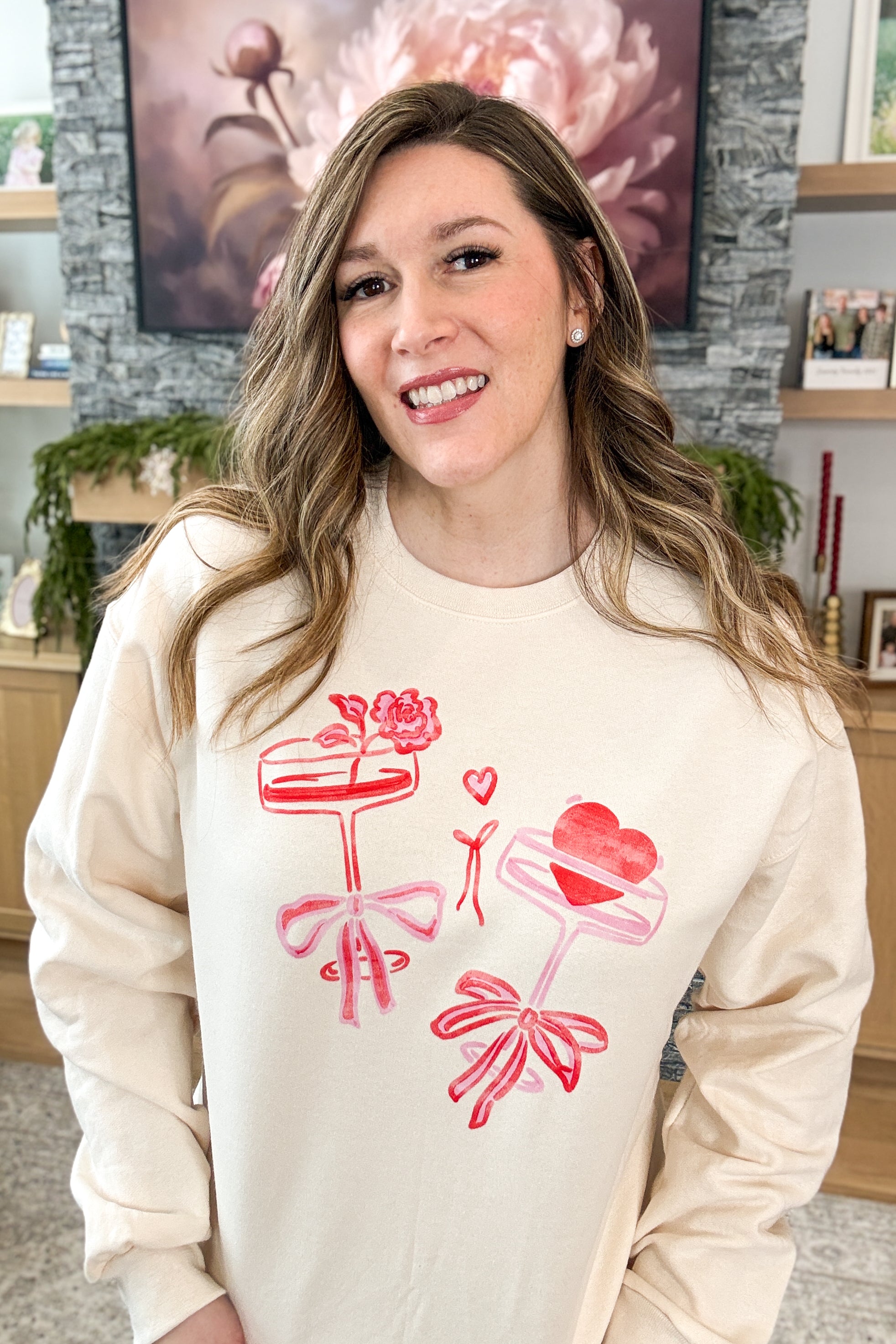 The Romantic Champagne Glasses Pullover Sweatshirt is made for love-filled moments and sweet celebrations. Designed on a cozy ivory sweatshirt, it features a pink and red watercolor champagne glass graphic that feels perfectly coquette and romantic. Soft, comfortable, and ideal for Valentine’s Day or date nights at home. Styling tip: Pair this sweatshirt with light wash denim and ballet flats for an effortlessly romantic look.