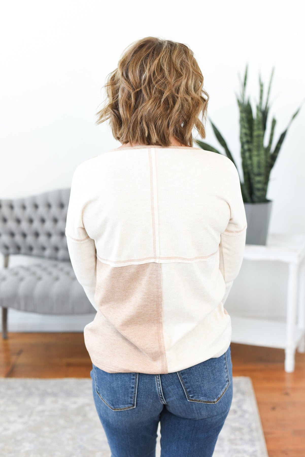 The Penelope Half Button Color Block Top is softness and style wrapped into one cozy essential. Made from the softest brushed fabric ever (trust us, you’ll never want to take it off), this top features a chic white and taupe color block design and a half button neckline for a touch of casual polish. It’s the perfect piece for cooler days when comfort is key but style still matters. Styling tip: Pair with your favorite denim and ankle boots for a go-to fall look, or wear with leggings and a messy bun for the ultimate cozy-day fit.