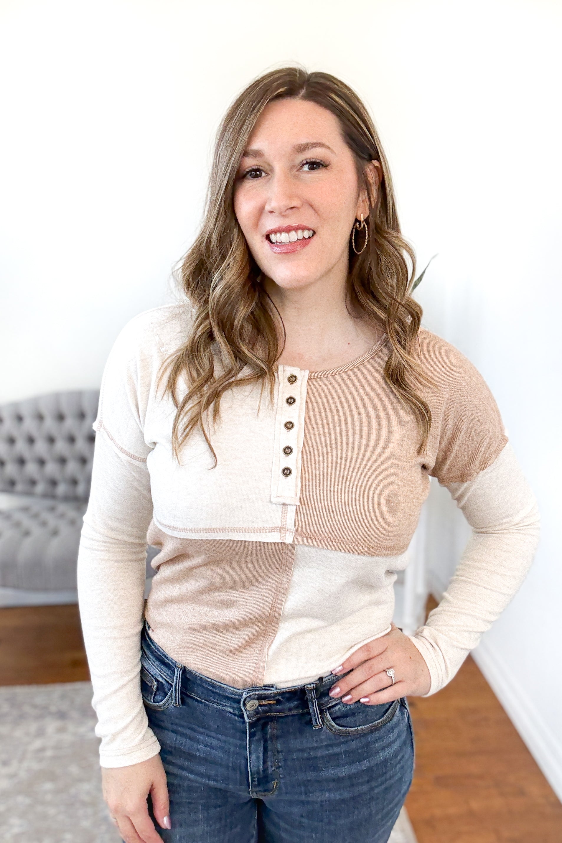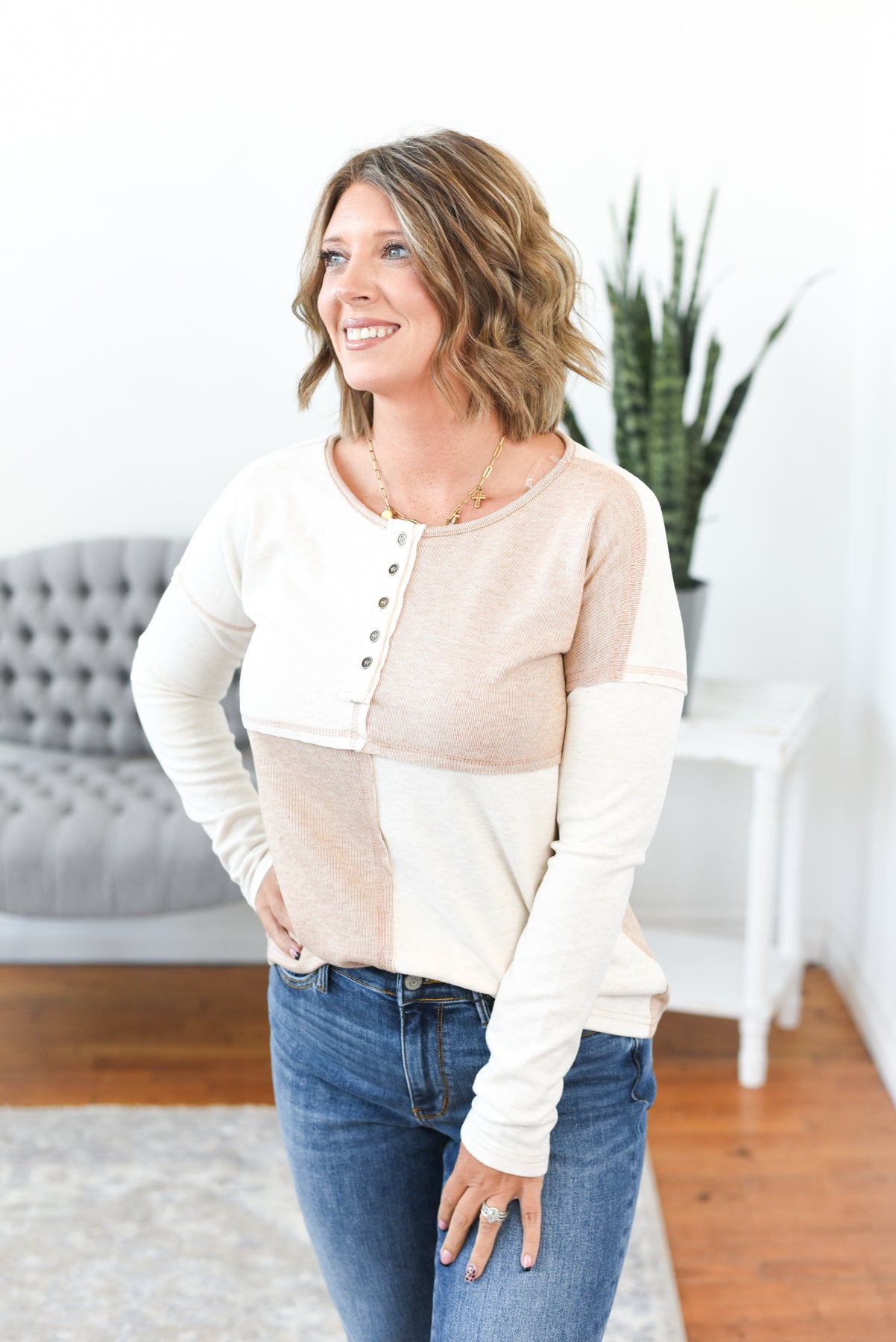 Penelope Half Button Color Block Top – Olive Rose Boutique