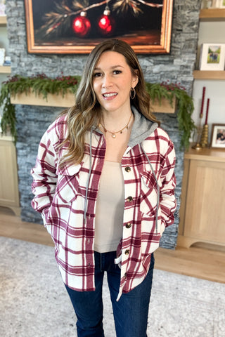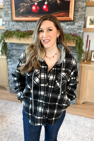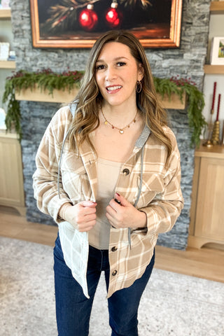 Rustic Ridge Plaid Fleece Shacket DOORBUSTER FINAL SALE - Light Grey