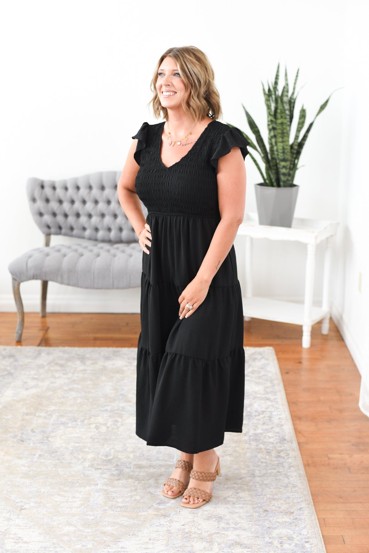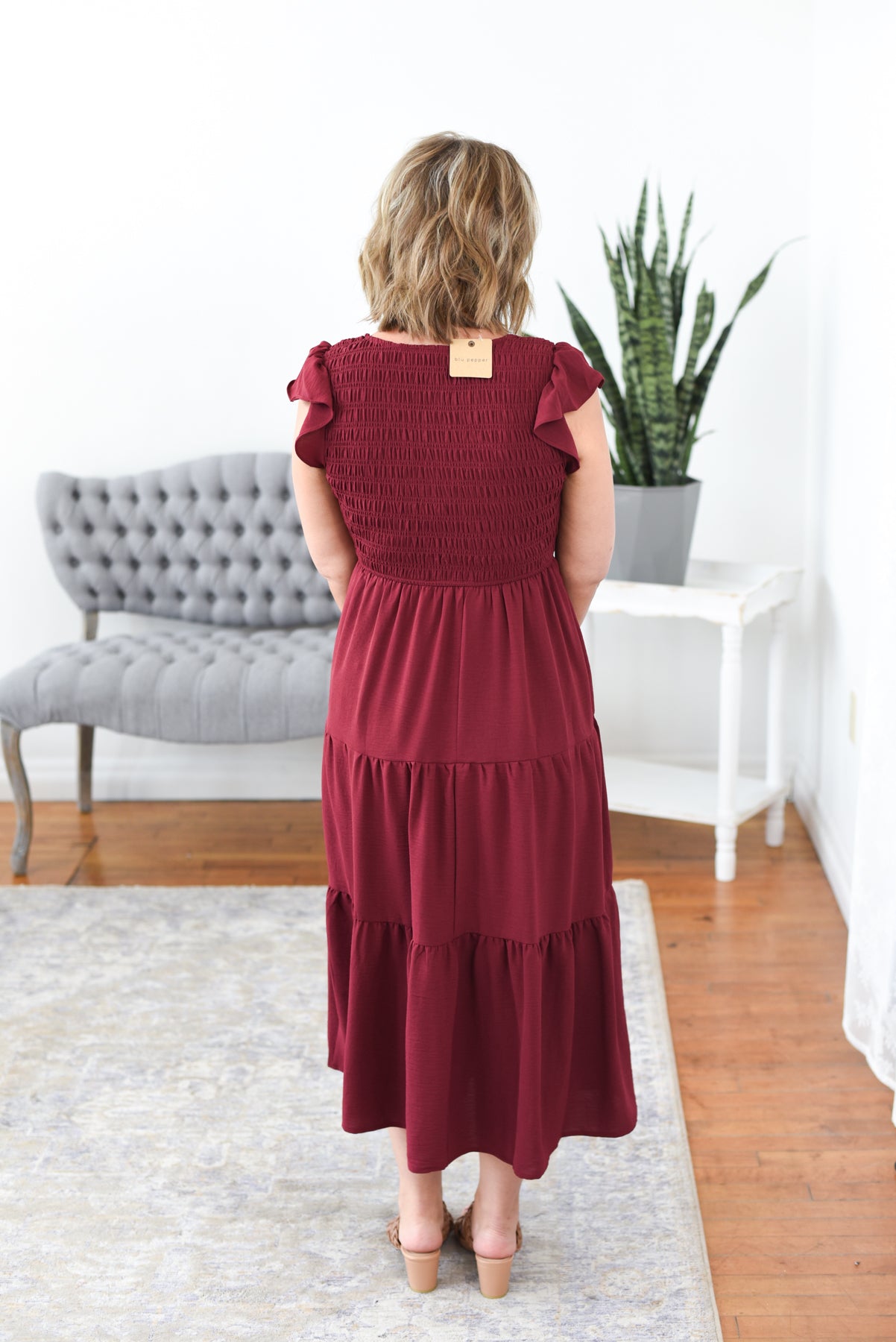 The Catalina Flutter Sleeve Midi Dress is a breath of fresh coastal air in the dreamiest shade of aqua blue. With a stretchy smocked bodice and a flowy tiered skirt, it flatters in all the right places while keeping things light and airy. Feminine flutter sleeves add the perfect finishing touch for weddings, weekends, or anything in between. Styling tip: Dress it up with wedges and statement earrings, or keep it casual with sandals and a straw tote.
