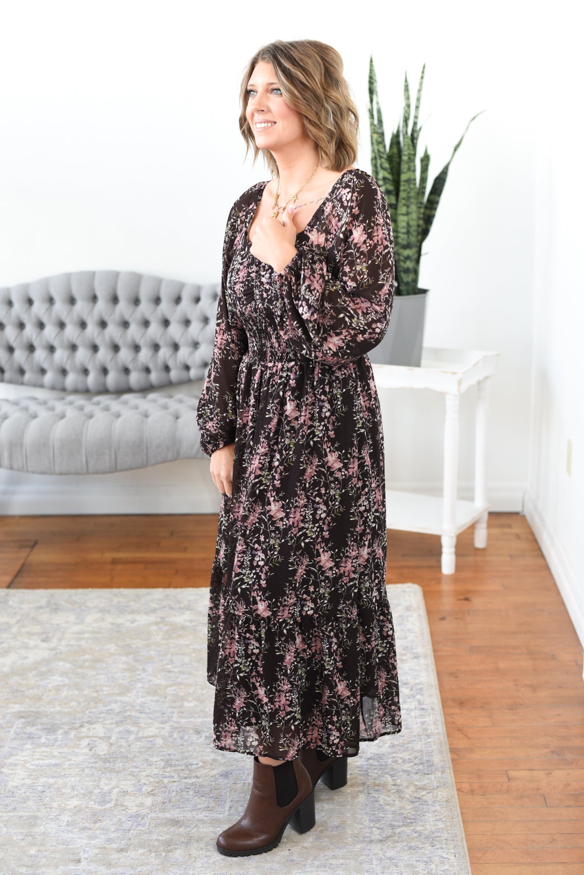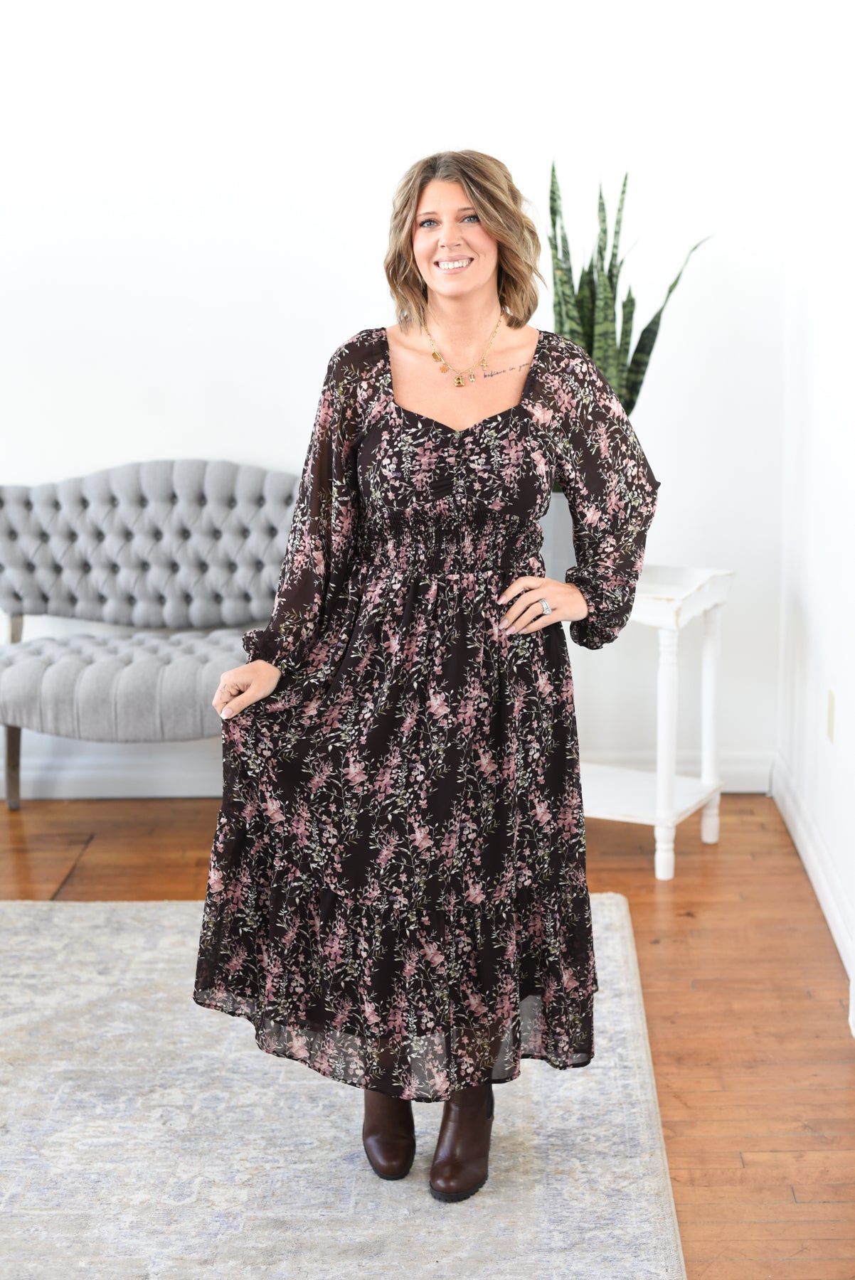 The Mia Floral Chiffon Midi Dress is soft, feminine, and made for twirl-worthy moments. Featuring a delicate floral chiffon overlay, it’s designed with a flattering sweetheart neckline, smocked bodice, and tie-back detail for the perfect fit. Effortless and romantic, it’s a dreamy choice for brunches, weddings, or sunny afternoons. Styling tip: Pair the Mia Dress with strappy sandals and dainty jewelry for a fresh, feminine look.