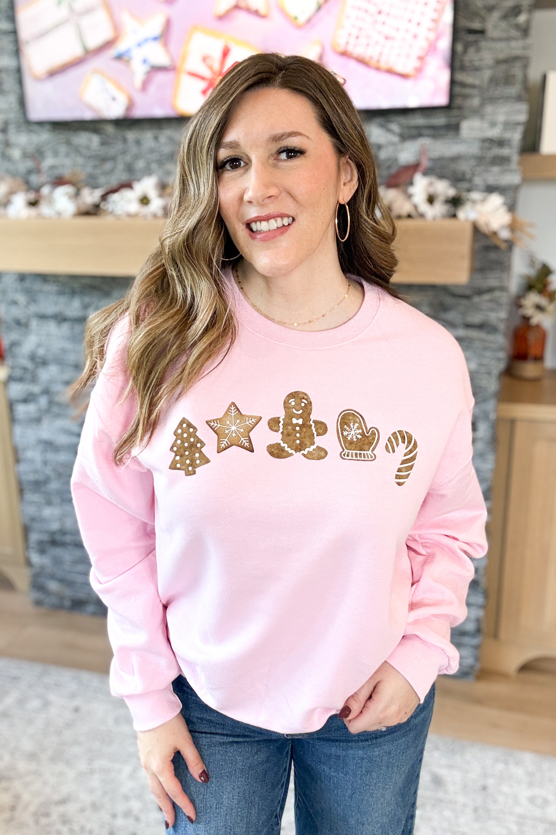 The Gingerbread Cookies Pullover Sweatshirt is as sweet as the season itself. Adorned with adorable cookie designs on a soft pink fleece-lined sweatshirt, it’s the perfect mix of cozy and festive. Comfy, cute, and made for cookie-baking days or holiday movie nights. Styling tip: Pair the Gingerbread Sweatshirt with leggings and fuzzy socks for lounging, or jeans and sneakers for a cheerful, everyday holiday look.