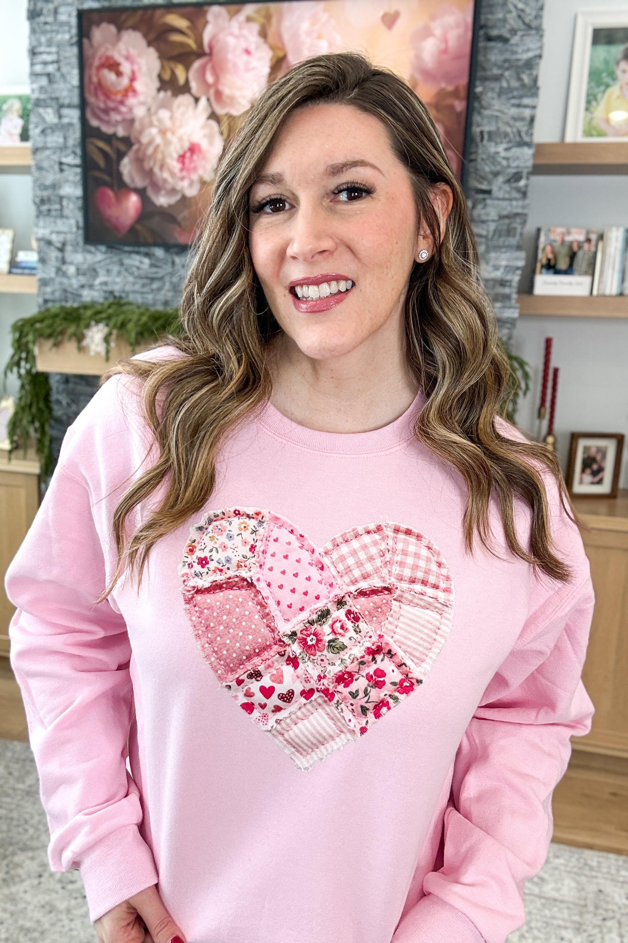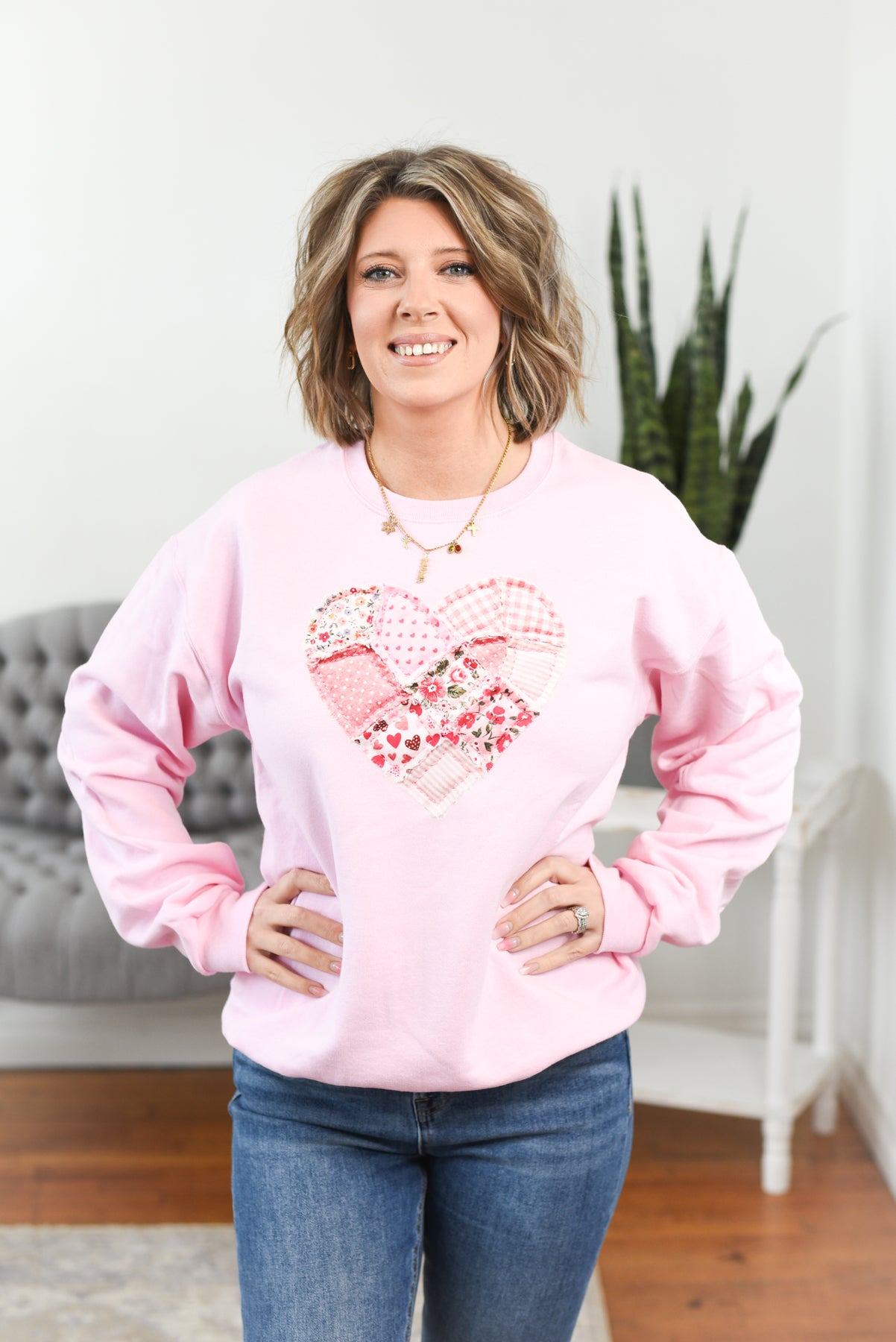 Valentine Patchwork Heart Pullover Sweatshirt (MADE TO ORDER)