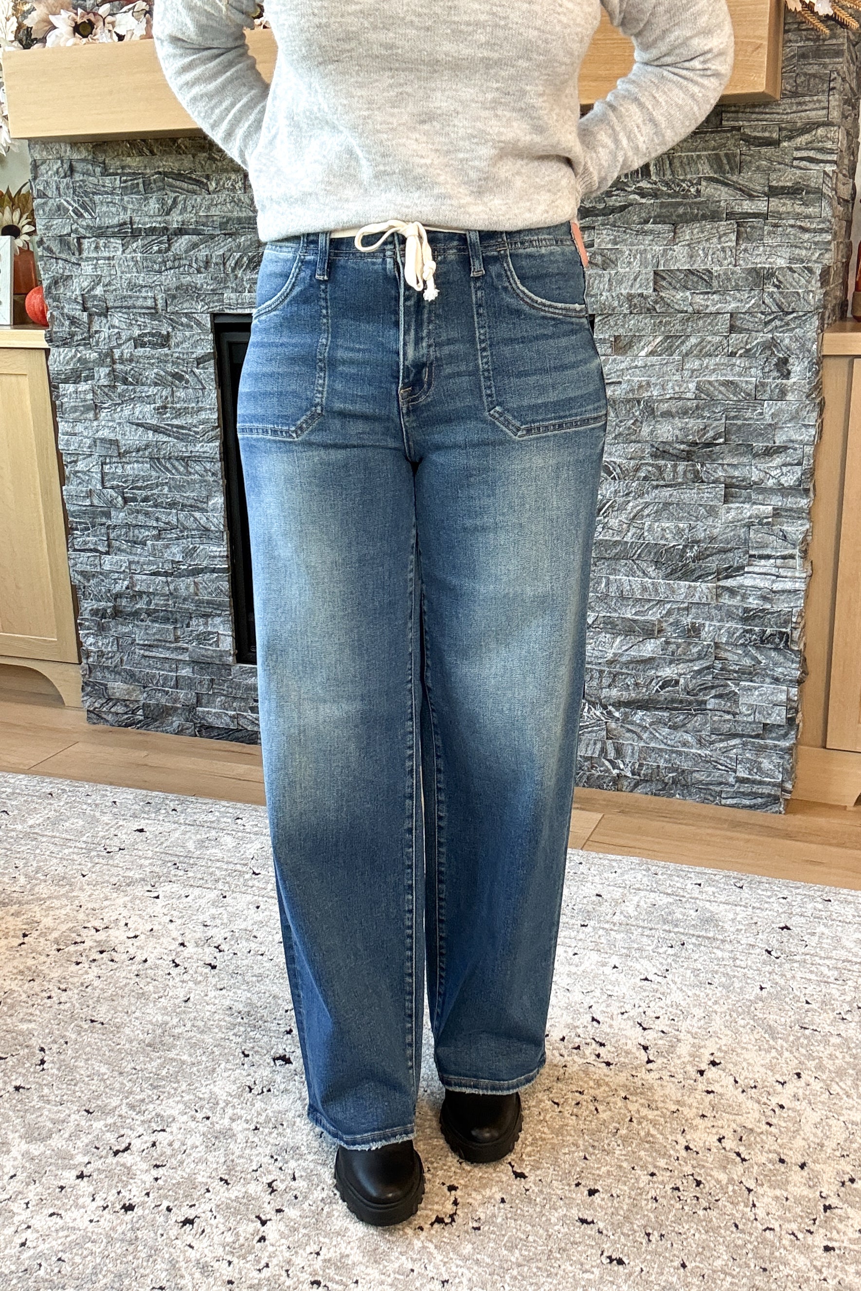 The Christie High Rise Wide Leg Risen Jeans give classic denim a fresh, modern feel. Crafted from Risen’s signature soft, lived-in fabric in a versatile medium wash, they feature patch pockets and a flattering front waist tie for that effortlessly polished touch. With a timeless wide-leg silhouette, they’re made for year-round wear and easy styling. Styling tip: Pair the Christie Jeans with a tucked-in blouse and platform sandals for a chic, throwback vibe.
