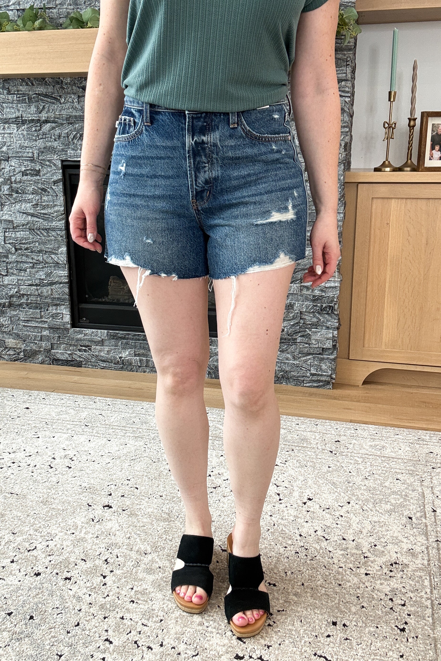 The Scottie Rigid Magic Judy Blue Shorts are the perfect blend of structure and stretch. Featuring Judy Blue’s signature Rigid Magic design—100% cotton in the front with stretchy comfort in the back—they offer a flattering fit with all-day wearability. Finished in a medium wash with distressed details, a raw hem, and cute back pocket stitching, they’re your go-to warm weather staple. Styling tip: Pair the Scottie Shorts with a relaxed graphic tee and sneakers for an effortless everyday summer look. ☀️