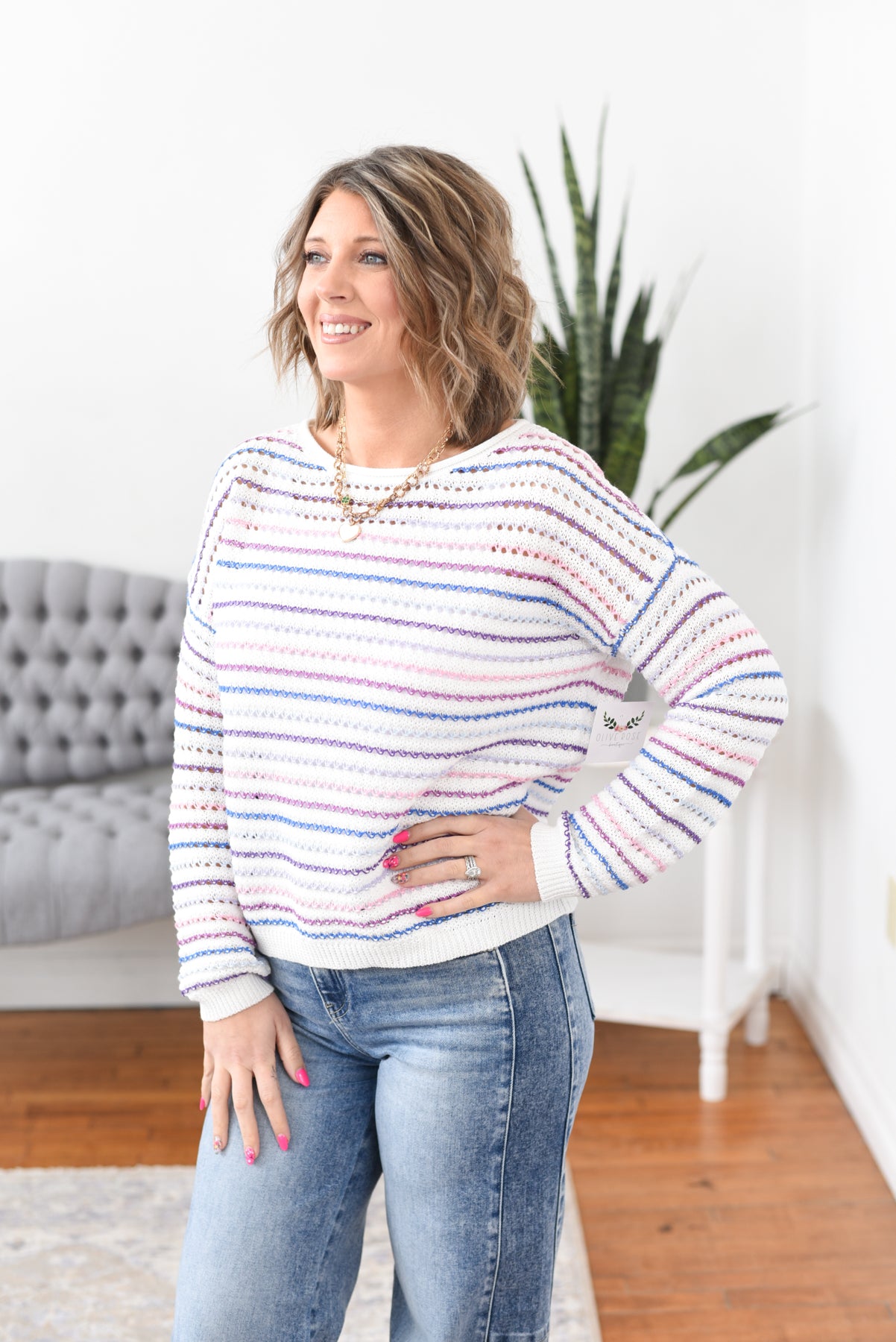 Meagan Open Knit Striped Sweater – Olive Rose Boutique