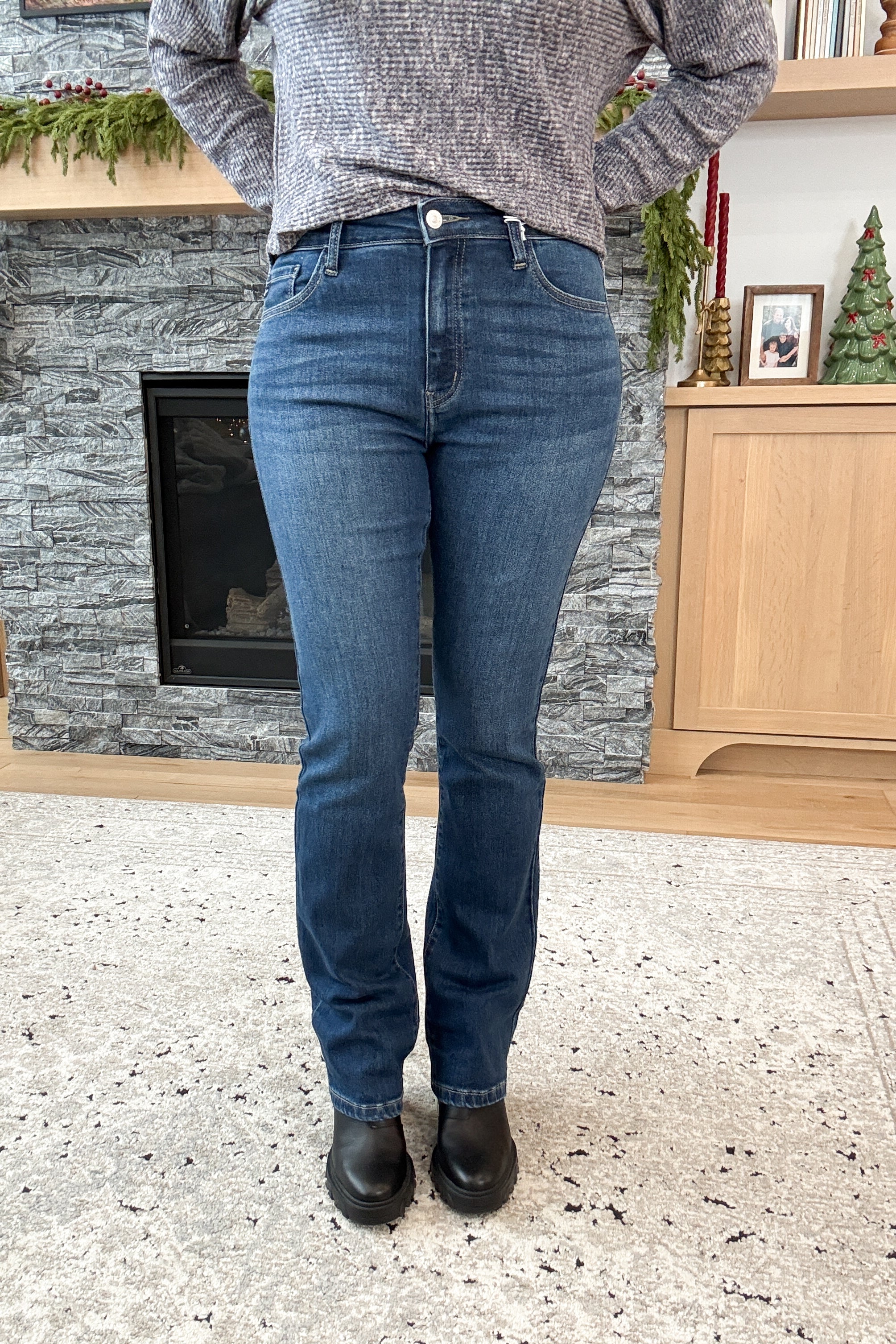 The Eden High Rise Bootcut Kancan Jeans are a timeless denim staple with everyday comfort built in. Crafted from lightweight, lived-in-feel denim in a sleek dark wash, they feature a flattering high rise and classic bootcut silhouette that never goes out of style. Stretchy, comfortable, and classy—perfect for daily wear. Styling tip: Pair the Eden Jeans with a fitted top and heeled boots for a clean, lengthened look that works year-round.