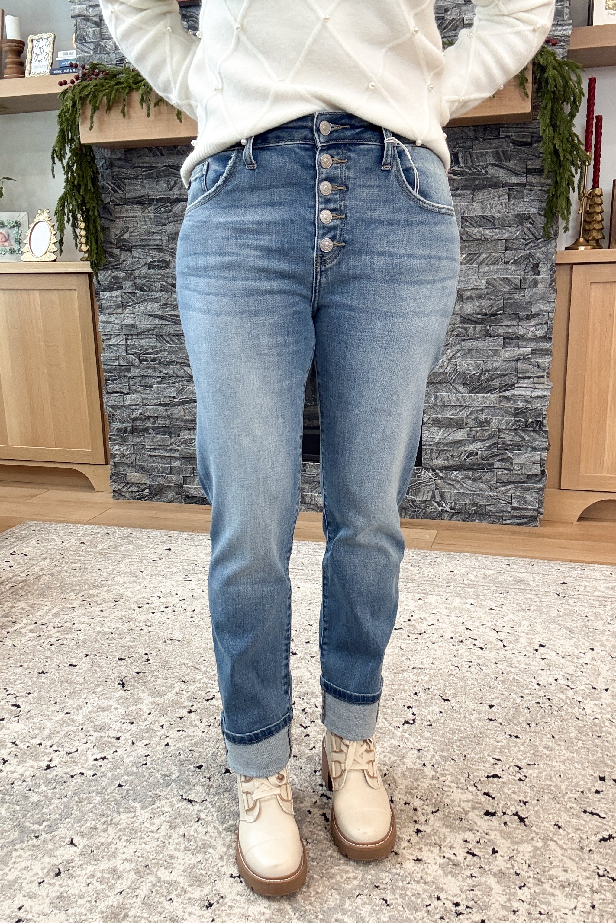 Jolie Mid Rise Slim Straight Button Fly Kancan Jeans