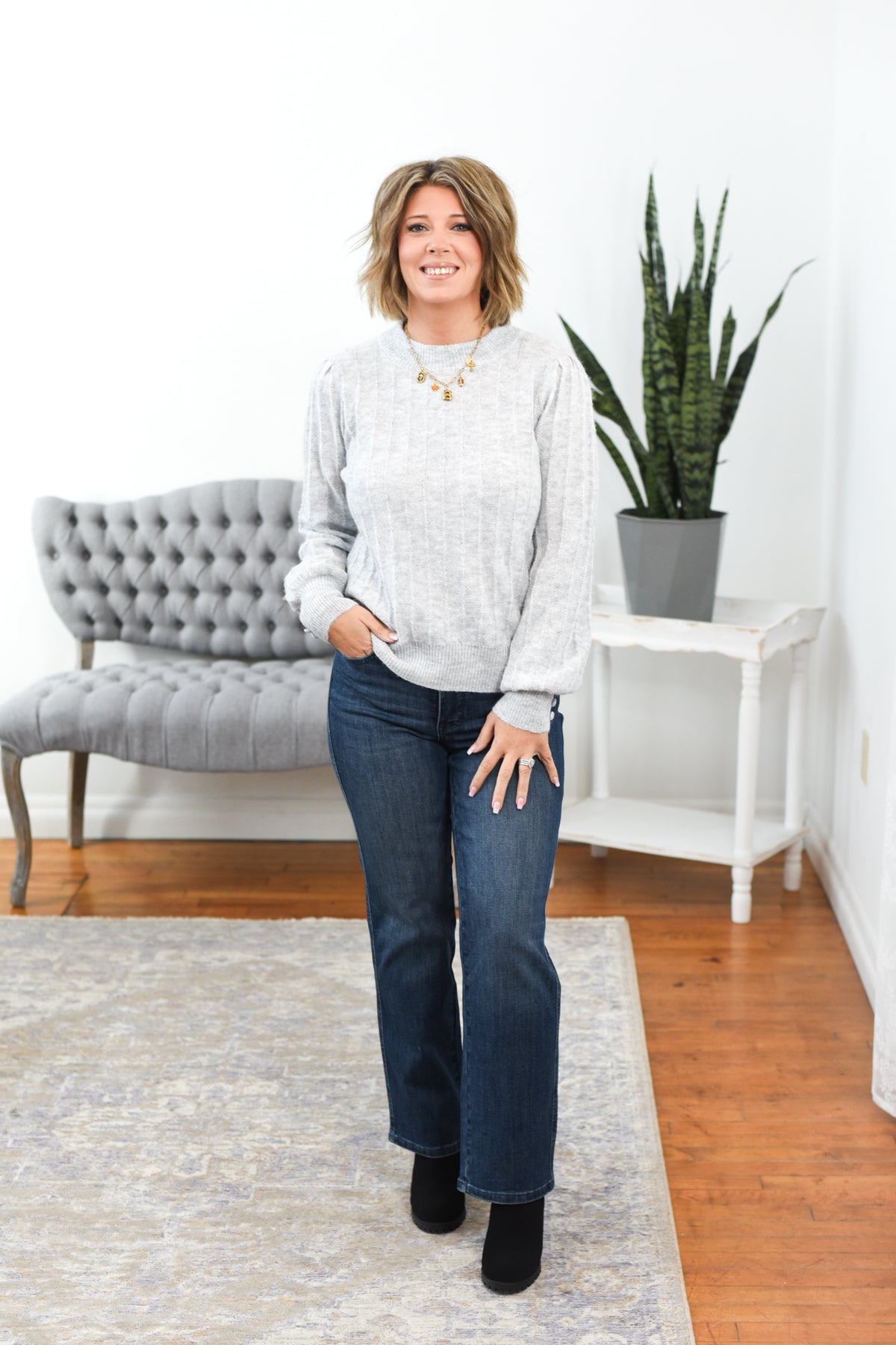 The Lexus Textured Stripe Sweater is lightweight, soft, and endlessly wearable. With its subtle striped texture, classic crew neckline, and charming sweater-knit button details at the wrists, it’s the perfect elevated basic for winter-long layering. Cozy, stretchy, and effortlessly polished. Styling tip: Pair the Lexus Sweater with straight-leg denim and ankle boots for a simple, chic cold-weather look.