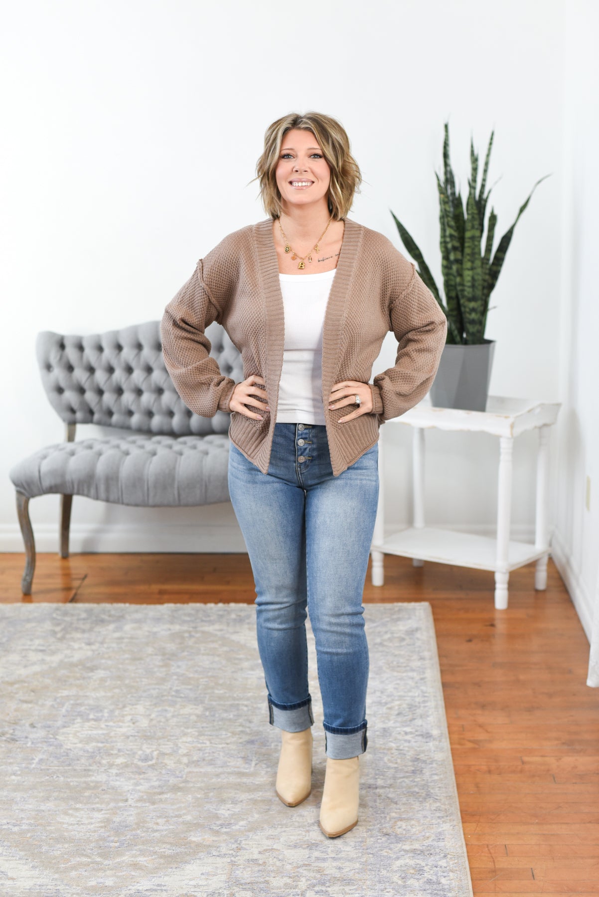 The Lyrah Textured Cardigan is cozy, chic, and endlessly easy to style. Made from soft, stretchy textured sweater knit, this open-front design features relaxed balloon sleeves and comes in two versatile neutral colors. A year-round layering staple that adds instant polish to any outfit. Styling tip: Pair the Lyrah Cardigan with a fitted tee and high-rise denim for an effortlessly put-together look.