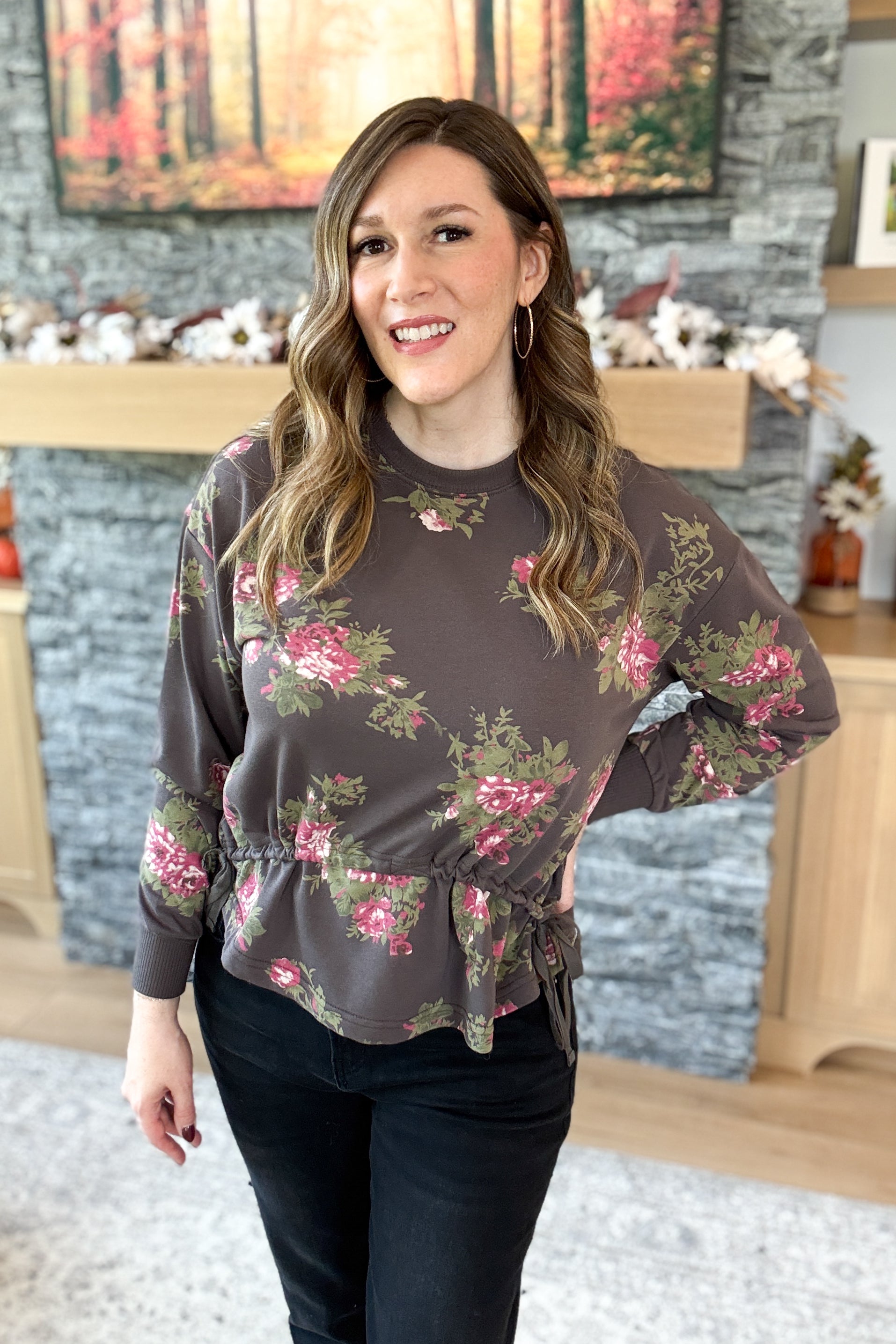 Violette Floral Terry Tie Waist Sweatshirt FINAL SALE