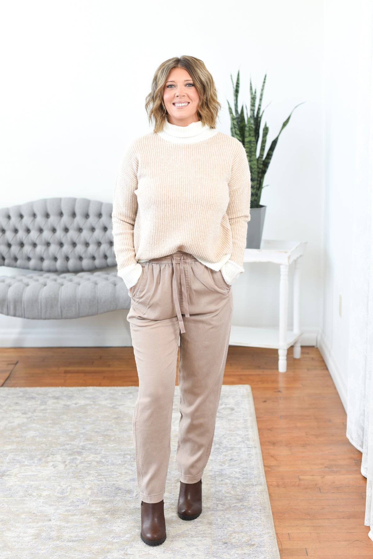 The Daisy Marled Ribbed Turtleneck Sweater is a cozy essential with modern flair. Crafted from a soft, stretchy sweater knit, it features a marled striped texture and color block design that makes cold-weather dressing anything but boring. The classic turtleneck silhouette adds warmth and polish—perfect for crisp fall outings, workdays, or winter weekends. Styling tip: Pair the Daisy Sweater with wide leg jeans and boots for a chic, layered look that’s ready for any chilly day.