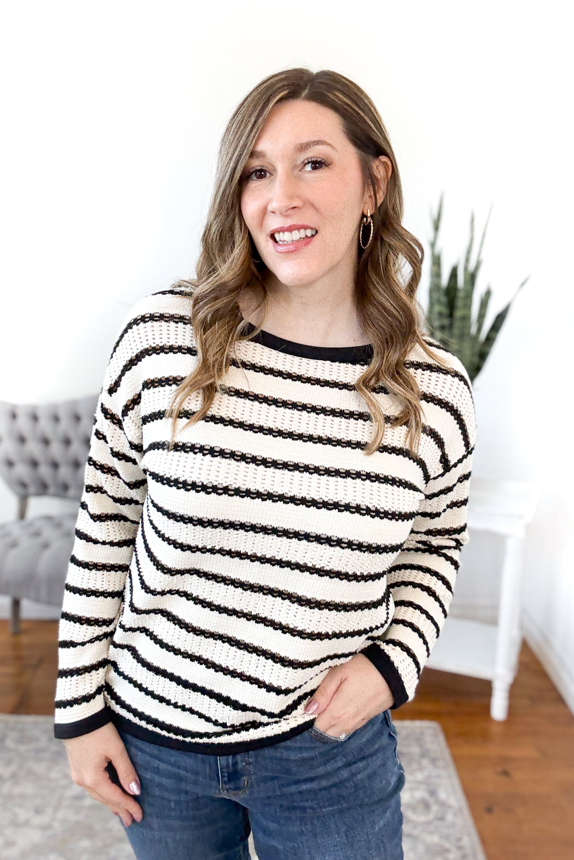 Ellery Striped Open Knit Sweater – Olive Rose Boutique