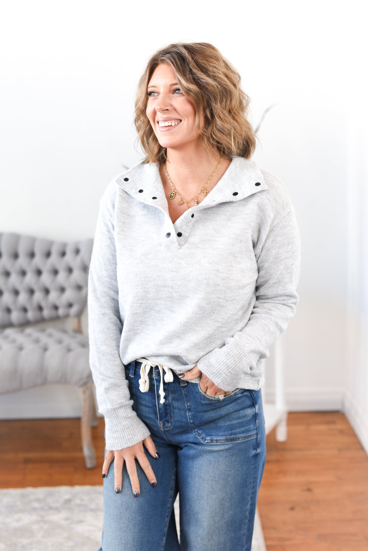 Susan Mock Neck Half Snap Button Sweater – Olive Rose Boutique
