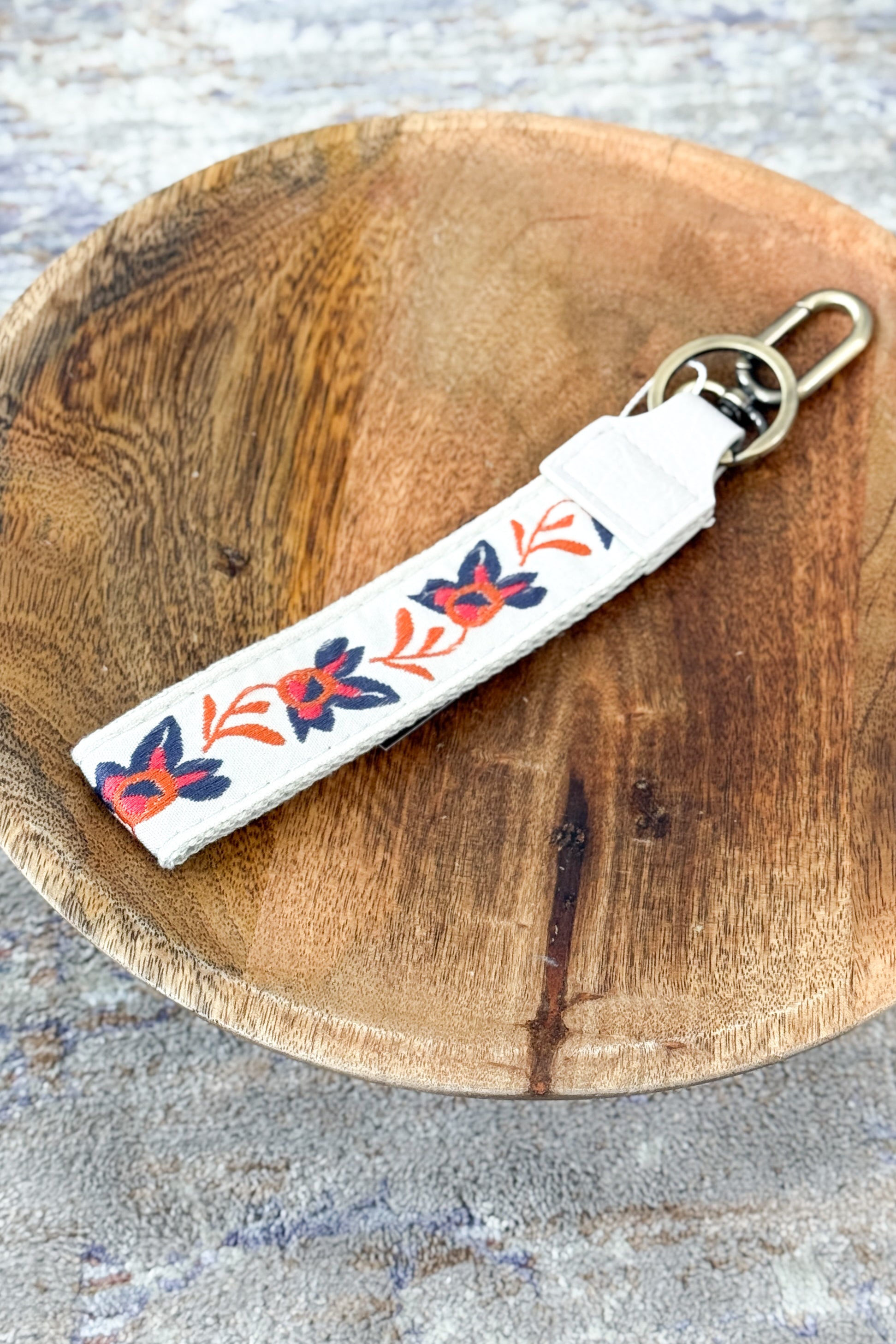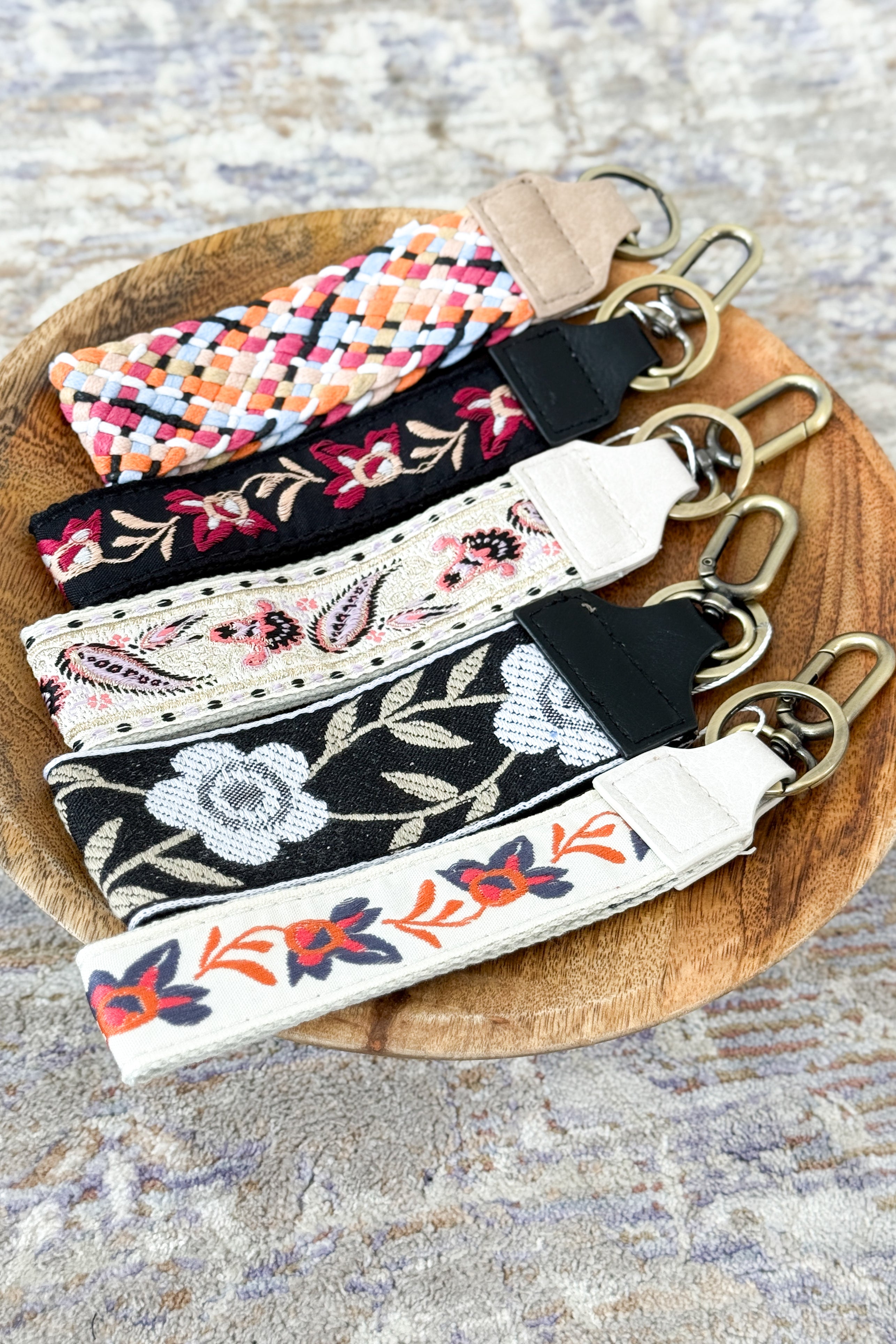 The Guitar Strap Wristlet by Joy Susan features vibrant floral embroidery that adds a playful, boho twist to your everyday carry. It’s equal parts statement and function—style meets convenience in the best way.