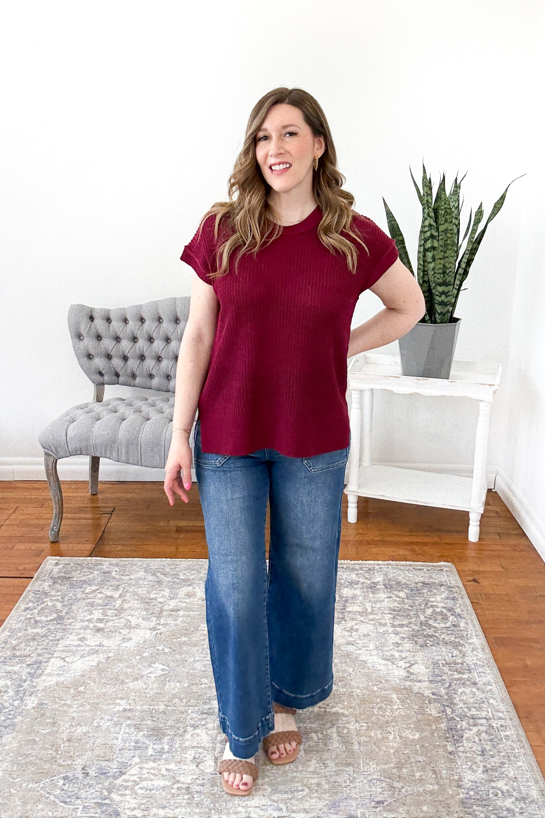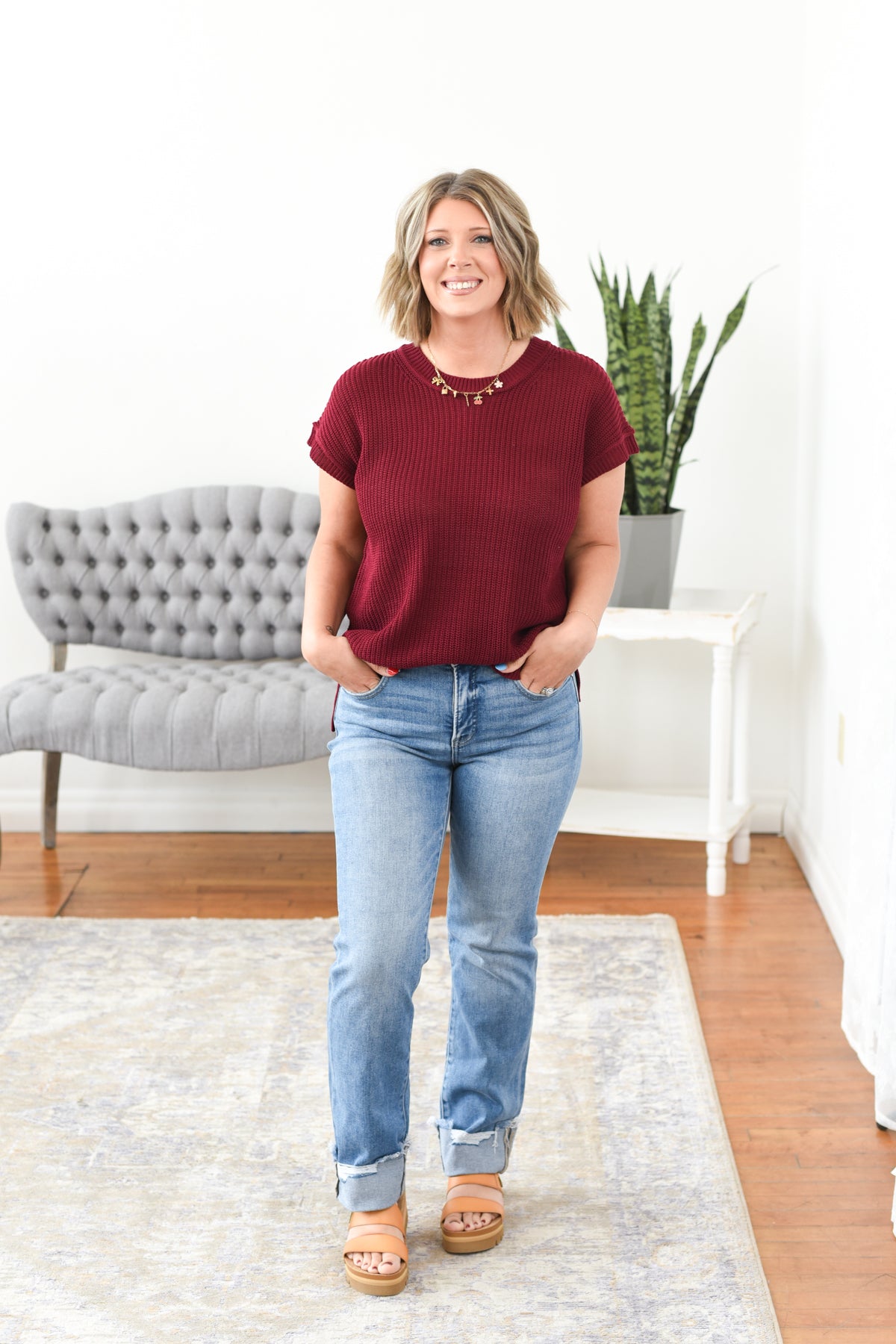 The Hollie Crew Neck Sweater Vest Top is your new layering hero with endless styling potential. Made from ultra-soft sweater knit fabric, it features a longer length and side slits for easy movement and a flattering oversized fit. Wear it solo as a top or layered as a vest—either way, it's the perfect transitional piece to take you from summer into fall. Styling tip: Layer it over a button-down with boots for a preppy fall look, or wear it solo with leggings for cozy-chic simplicity.